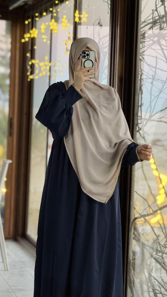 Taille : Abaya femme avec foulard deux pièces « Fatma » Bleu marine longue abaya femme robe moderne Tunisie Taille 1 : S et M | Taille 2 : L et XL | Taille 3 : XXL et XXXL