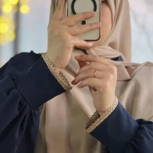 Conception : Abaya femme avec foulard deux pièces « Fatma » Bleu marine longue abaya femme robe moderne Tunisie